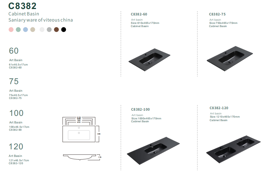 C8382 60-120cm Slim Profile Cabinet Basin Design